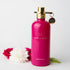 - Presentación frasco metálico fucsia con detalles dorados.